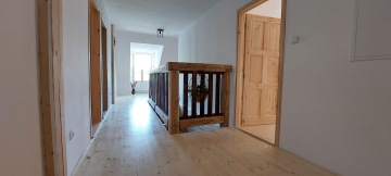 V patře se nachází 4 pokoje s manželskou postelí a patrovou postelí. Ve dvou pokojích je patrová postel s max. nosností horního lůžka do 100 kg, proto jsou dvě lůžka počítána pro děti. Pokoje jsou prostorné a jsou útulně zařízeny. Součástí každého pokoje je také úložná skříň.