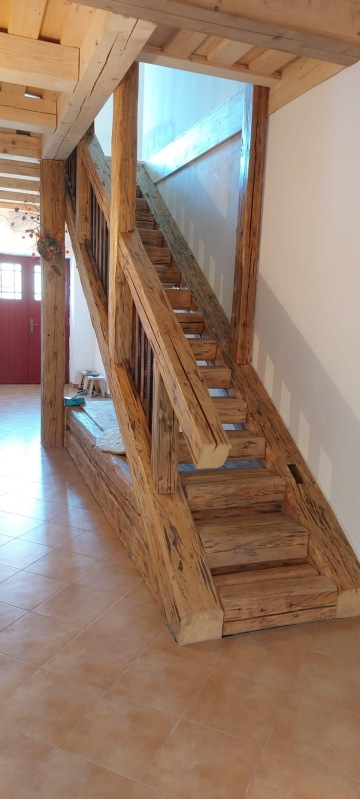 Dále je v přízemí plně vybavená kuchyně s prostornou jídelnou a společenskou místností s kachlovými kamny.
